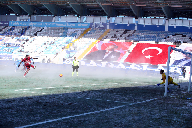 Süper Lig'in 26. haftasında BB Erzurumspor sahasında Atakaş Hatayspor ile karşı karşıya geldi. Mücadele -7 derecede oynanırken, stadın alttan ısıtmalı olması nedeniyle ortaya sürpriz görüntüler çıktı. İşte o kareler...