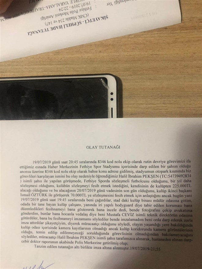 2. Lig ekiplerinden Fethiyespor'da forma giyen Halil İbrahim Pekşen kulüp başkanının koruması tarafından darp edildiği iddiasında bulundu. Genç futbolcu ayrıca Başkan İsmail Öztürk'ün koruması tarafından, zorla imza attırılarak alacaklarından feragat ettirildiği söyledi. İşte detaylar...