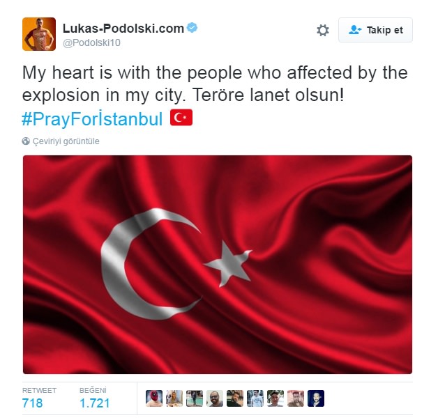 Dün akşam saatlerinde Vodafone Arena yakınında meydana gelen patlama sonrası futbol dünyası teröre tepki gösterdi.