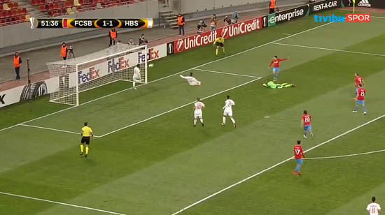 Mücadelenin 1-1 devam ettiği 52. dakikada Steaua'lı Budescu, kaleciyi çalımladıktan sonra topu boş kaleye gönderdi. Ancak çizgide bulunan Beer Sheva defans oyuncusu, topu eliyle kesti.