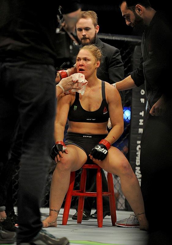 Rousey karşılaşma sonunda hastanelik oldu. Çin'in başkenti Pekin'de düzenlenen 2008 Yaz Olimpiyatları'nda Judo dalında altın madalya kazanan 28 yaşındaki sporcu, Holly Holm ile çıktığı müsabakada boynuna aldığı tekmeyle Oyun dışı kaldı.