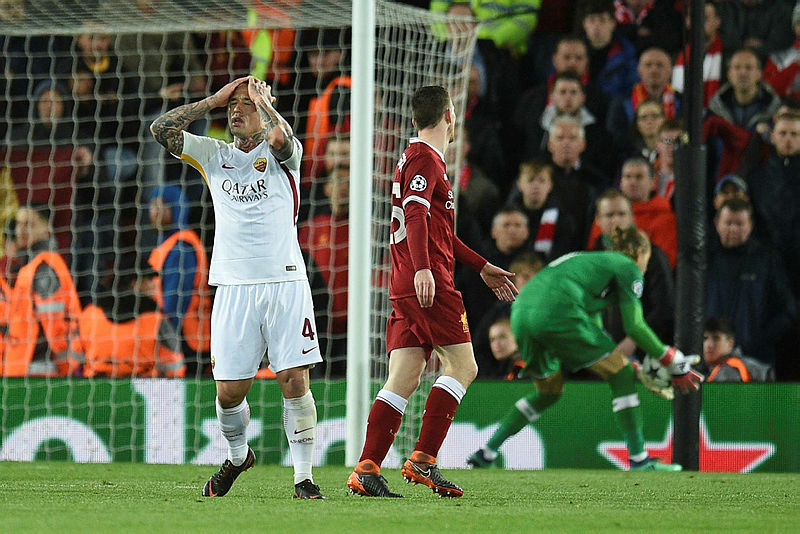 Anfield Road Stadı'nda oynanan maçta ilk tehlikeli atak, İtalyan temsilcisi Roma'dan geldi. 18'inci dakikada Kolarov'un ceza alanı dışından sert şutunda top, kaleci Karius'un da müdahalesiyle üst direkten döndü. Savunma meşin yuvarlağı uzaklaştırdı.