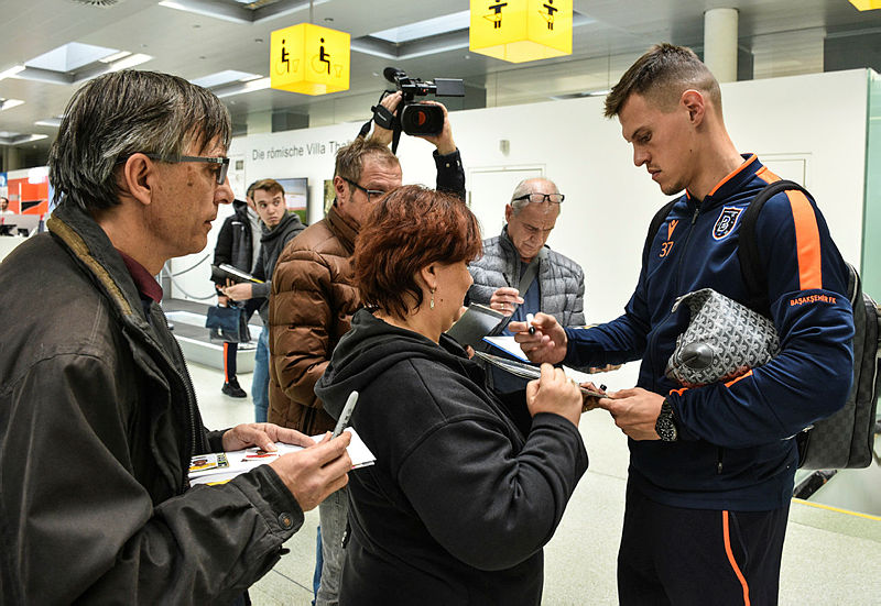 UEFA Avrupa Ligi J Grubu dördüncü haftasında yarın Avusturya temsilcisi Wolfsberger'e konuk olacak Medipol Başakşehir, Graz kentine geldi. Graz Havalimanı'na ulaşan turuncu-lacivertli takımı karşılayan bir grup Türk futbolsever, oyuncularla fotoğraf çektirdi.