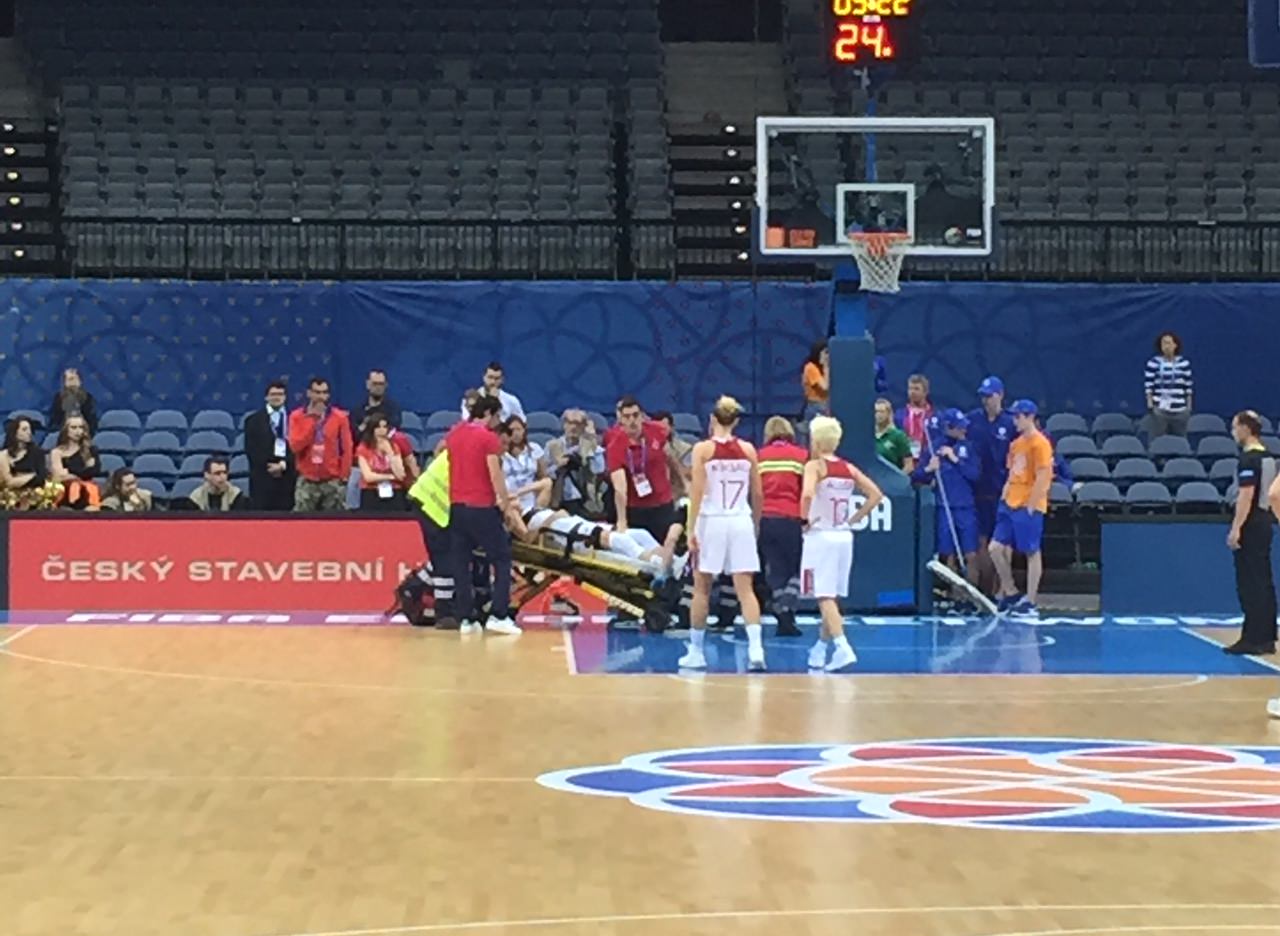 Türkiye A Milli Kadın Basketbol Takımı'nın Slovakya ile oynadığı klasman maçının ilk periyodunda sakatlanan Bahar Çağlar hastaneye kaldırıldı.
