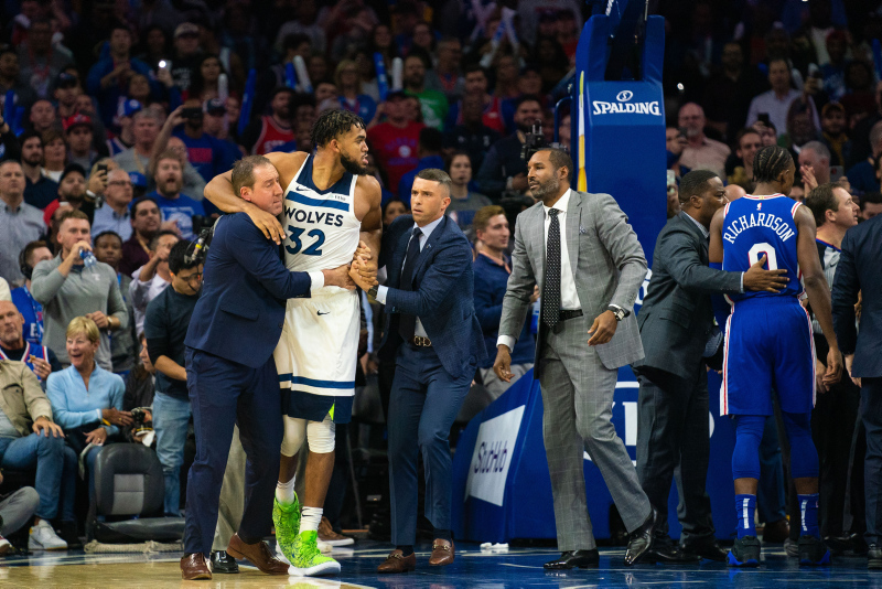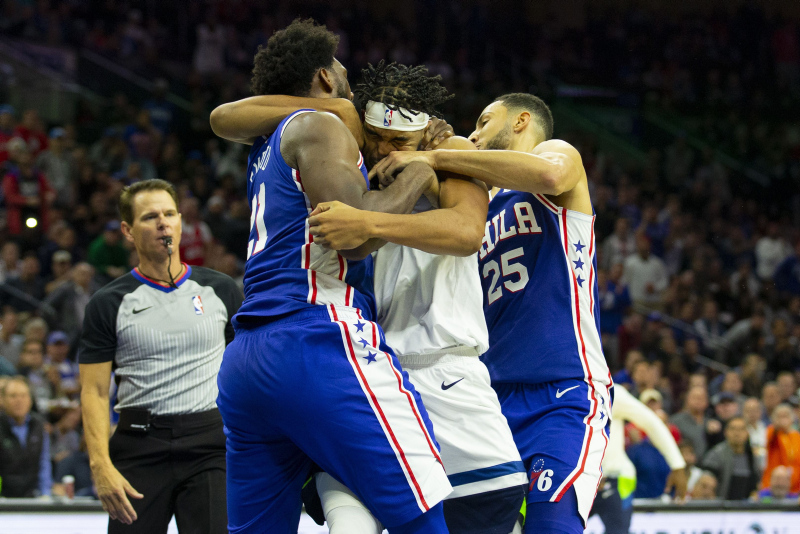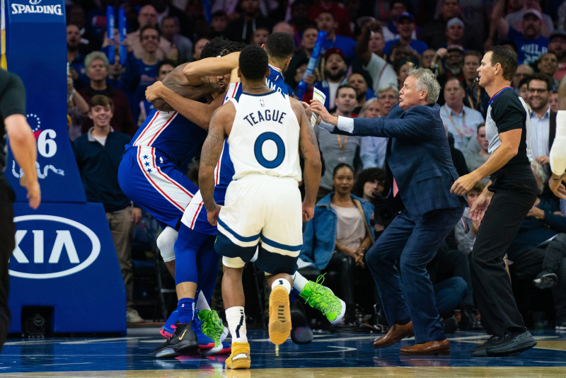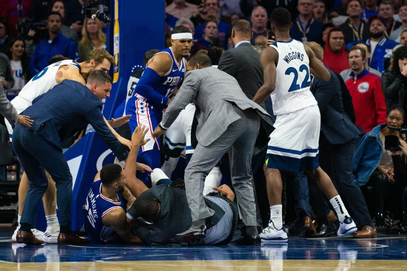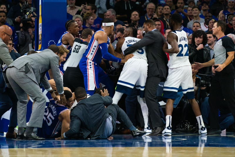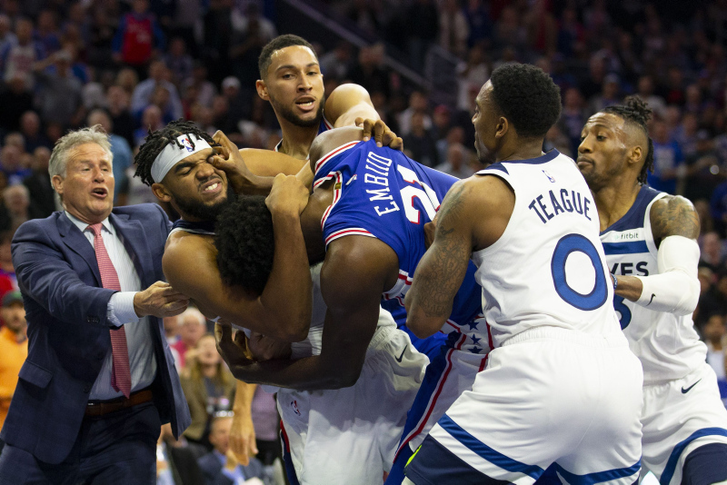 Amerikan Basketbol Ligi'nde (NBA) gece 11 maçla geçildi. Philadelphia 76ers'ın Minnesota Timberwolves'u 117-95 mağlup ettiği maçta ise ortalık birbirine karıştı. Philadelphia'nın yıldız oyuncusu Joel Embiid ve Minnesota'lı Karl-Anthony Towns arasında büyük bir kavga çıktı. İşte o anlardan kareler...