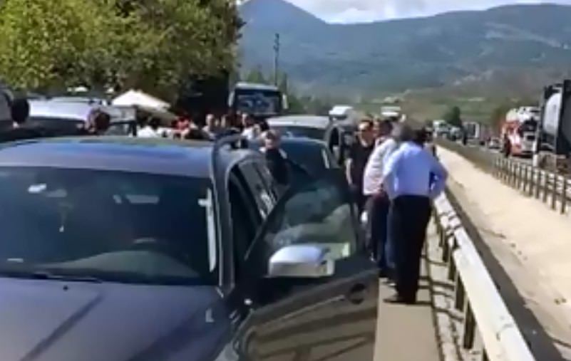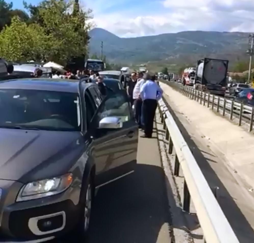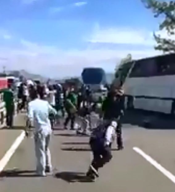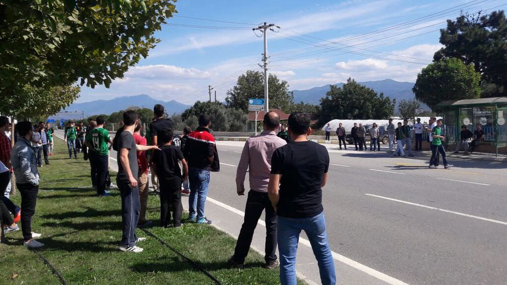Afyon deplasmanına giden Sakaryasportaraftarları ile İstanbul Ümraniyedeplasmanına giden Eskişehirspor taraftarları, Sakarya'nın Pamukova ilçesinde karşı karşıya geldi.