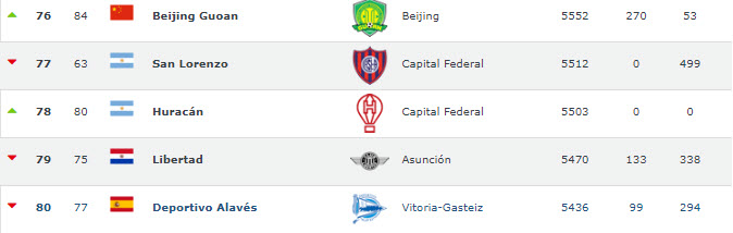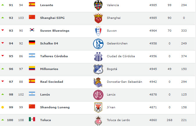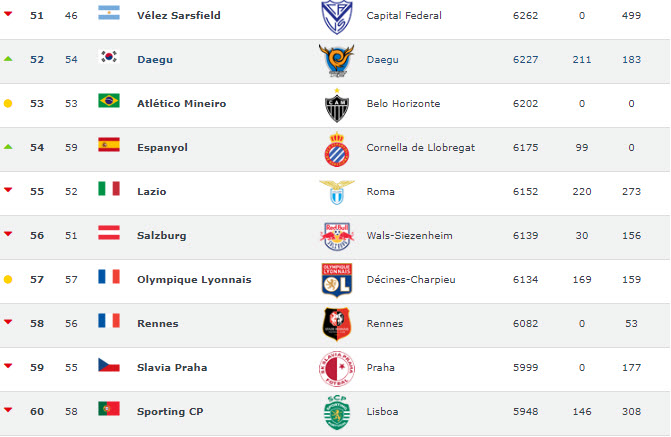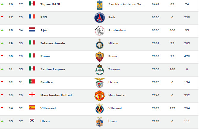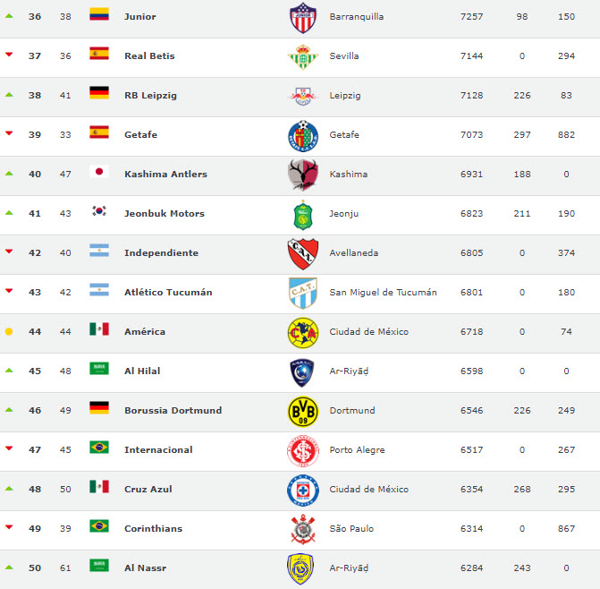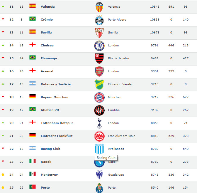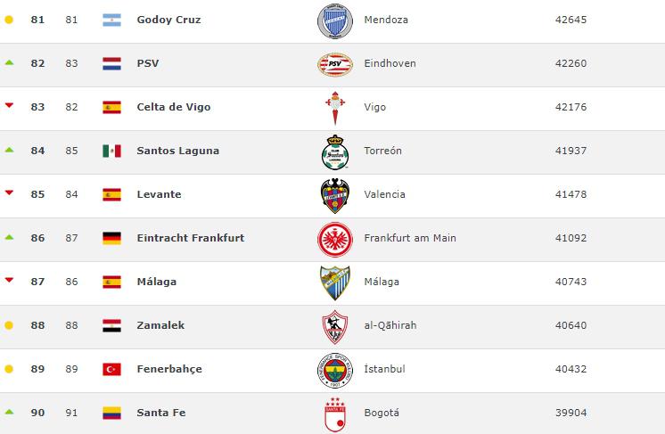 Football World Rankings, 2011-2019 yılları arasında en çok puan toplayan takımları sıralayarak dünyanın en başarılı futbol kulüplerini açıkladı. Listeye Türkiye'den sadece tek takım girebildi.