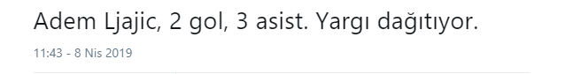 Spor Toto Süper Lig'in 27. haftasında Beşiktaş, Çaykur Rizespor'a konuk oldu. 7-2 biten tarihi maçta Ljajic ve Güven şov vardı. İşte 2 gol 3 asist ile oynayan Ljajic ile ilgili sosyal medyada yapılan yorumlar...
