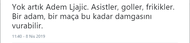 Spor Toto Süper Lig'in 27. haftasında Beşiktaş, Çaykur Rizespor'a konuk oldu. 7-2 biten tarihi maçta Ljajic ve Güven şov vardı. İşte 2 gol 3 asist ile oynayan Ljajic ile ilgili sosyal medyada yapılan yorumlar...