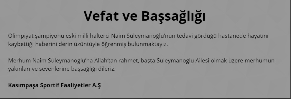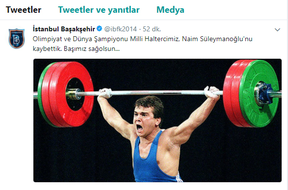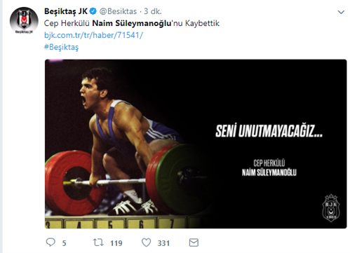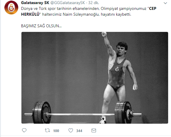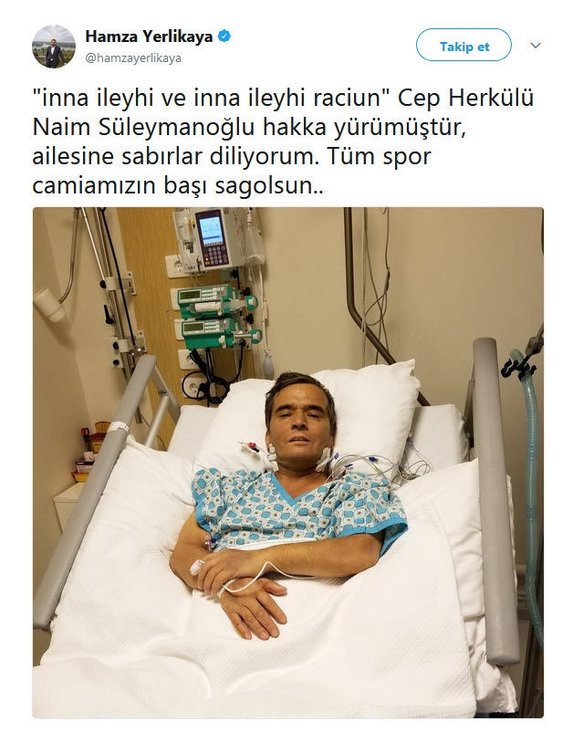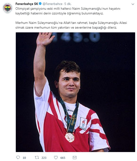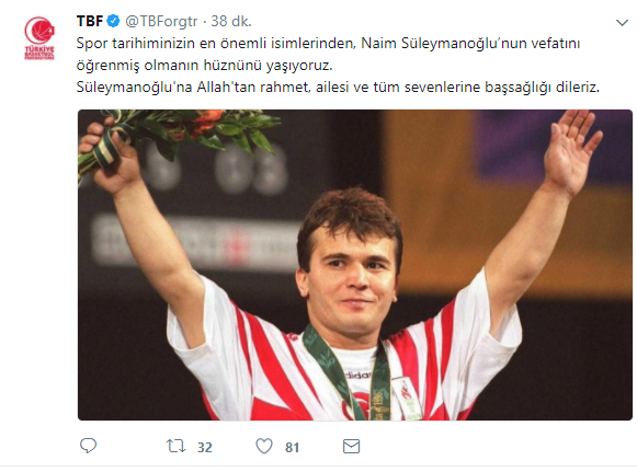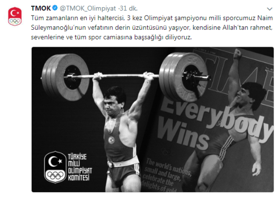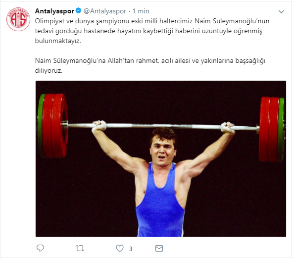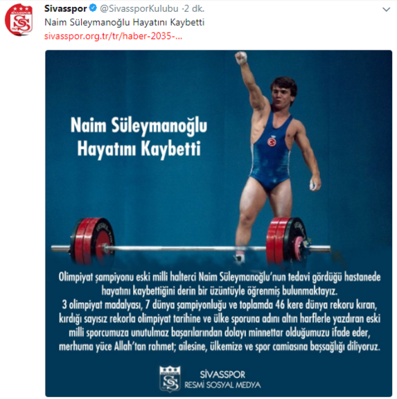 Olimpiyat şampiyonu eski milli halterci Naim Süleymanoğlu, tedavi gördüğü hastanede hayatını kaybettikten sonra spor camiası sosyal medya hesaplarından başsağlığı mesajı yayınladı.
