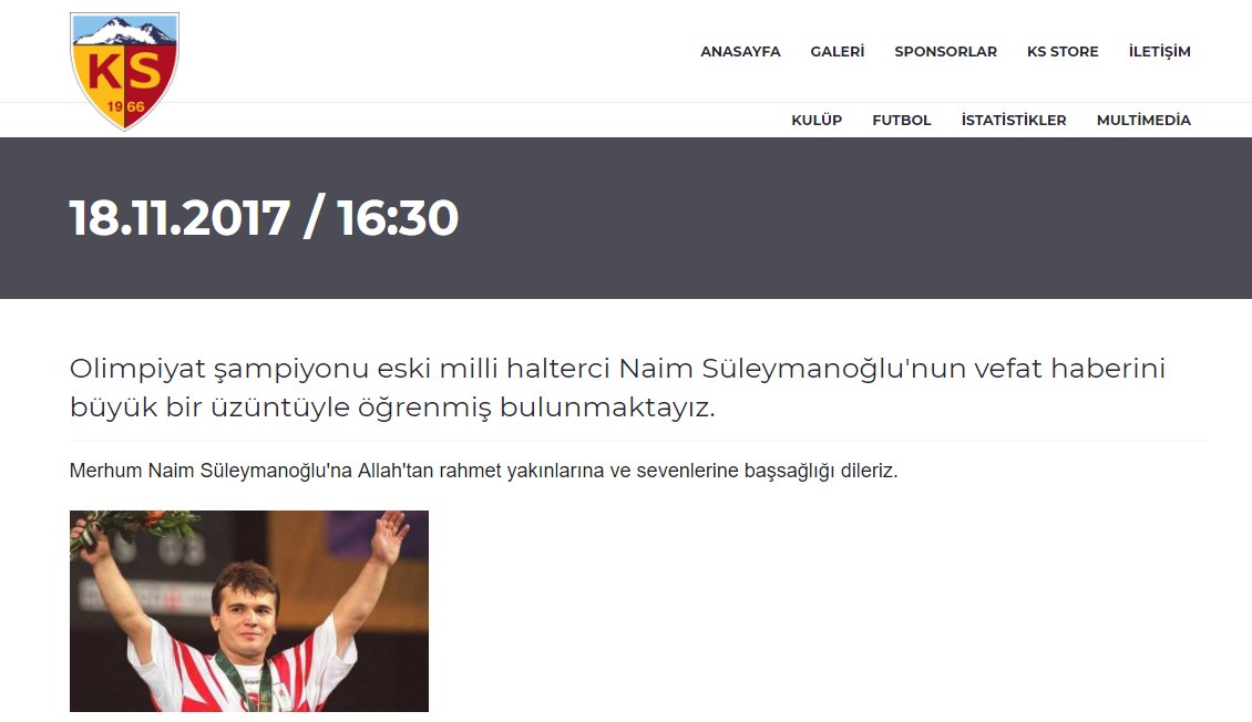 Spor camiasından Naim Süleymanoğlu'na başsağlığı