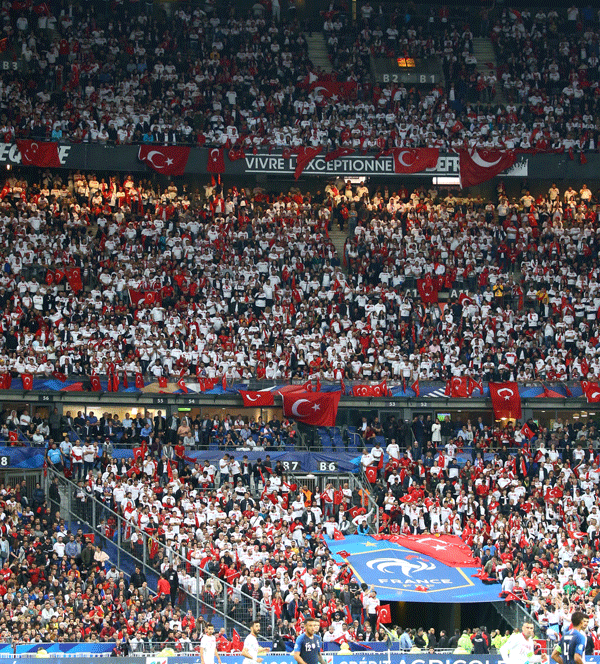 2020 Avrupa Şampiyonası (EURO 2020) Elemeleri H Grubu 8. haftasında A Milli Takım'ımız Fransa ile deplasmanda karşı karşıya geldi. Fransa'nın Paris'te bulunan Stade de France'de oynanan karşılaşmada yaklaşık 40 bin Türk taraftar stadı doldurdu var. 1-0 geriye düştüğümüz fakat Kaan Ayhan'ın şık kafa golüyle 1-1'lik beraberlikle ayrıldığımız maçta stattaki Türk taraftarlar milli takımımızı yalnız bırakmadı. İşte maç öncesi, sırası ve sonrasında stattan görüntüler...