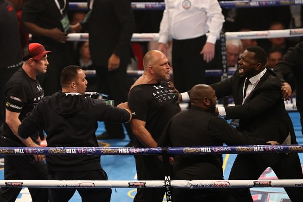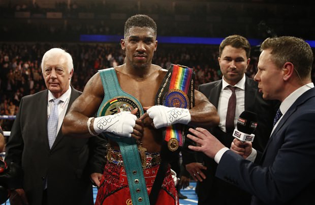 İngiltere'nin başkenti Londra'daki 20 bin kişilik O2 Arena'da oynanan maçta, 2012 Londra Olimpiyatları'nda altın madalya kazanan ve profesyonel kariyerinde yenilgisi olmayan 26 yaşındaki Joshua ile kendisi gibi ringde mağlubiyet yüzü görmeyen 27 yaşındaki Whyte karşı karşıya geldi.