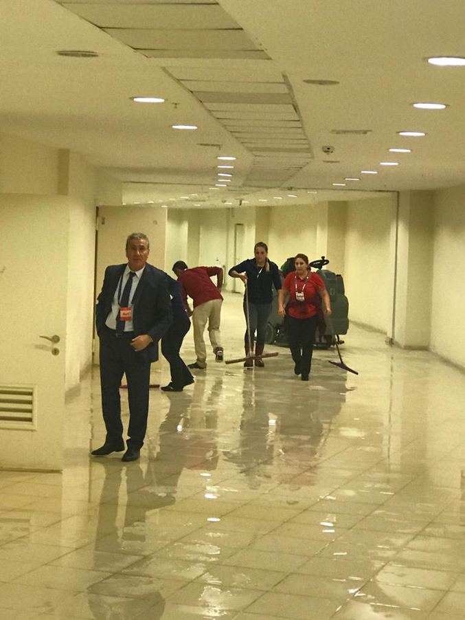 Statta alt katları su bastı. Aşçıların yemek yaparken yangın vanasını patlatınca ortaya bu görüntüler çıktı.