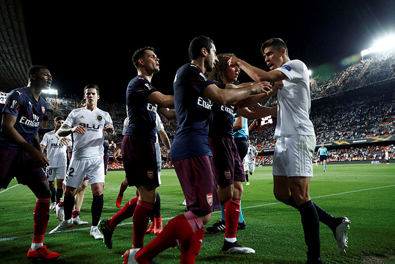 UEFA Avrupa Ligi'nde Arsenal, Valencia'yı deplasmanda 4-2 mağlup ederek finale yükseldi. Maçın bitiş düdüğünün ardından iki takım oyuncuları arasında gergin anlar yaşandı. İşte o gergin anların yaşandığı görüntüler ve maçtan önemli kareler...
