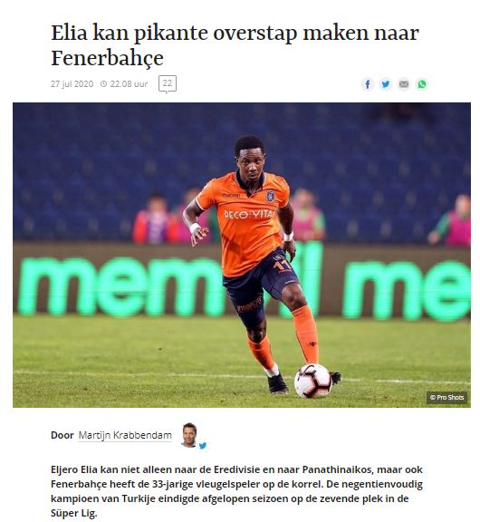 Başakşehir ile kontratının sonuna gelen Eljero Elia, teklifleri değerlendirmeye hazırlanırken Fenerbahçe'nin oyuncu için devreye girdiği öğrenildi.