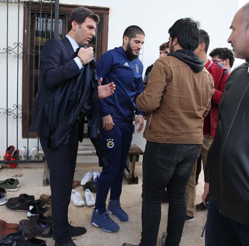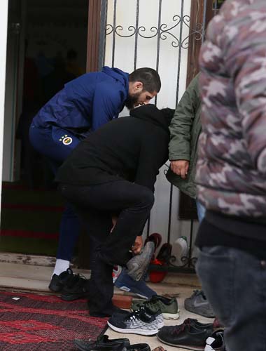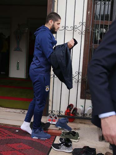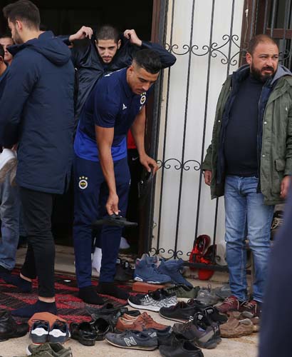 Cami, kilise ve sinagogun bir arada bulunduğu Dinler Bahçe'sinde cuma namazını kılan sarı lacivertli futbolcular cami çıkışı taraftarların sevgi gösterileriyle karşılaştı.