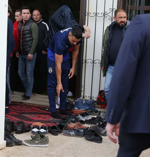 Devre arası kampını Antalya'da sürdüren bazı Fenerbahçeli futbolcular daha önce olduğu gibi yine cuma namazını birlikte kıldı.