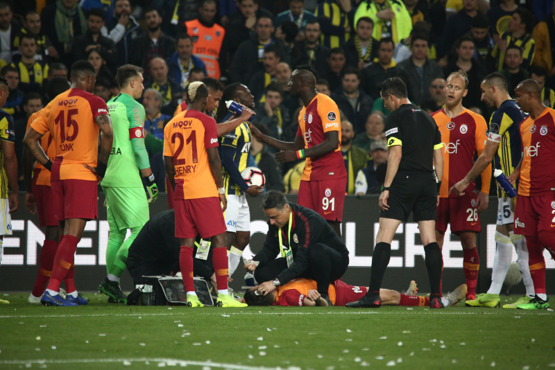 Fenerbahçe - Galatasaray derbisinin 64. dakikasında Martin Skrtel'in yerde kaldığı tehlikeli pozisyon sonrası Galatasaray ve Fenerbahçe'nin sağlık ekipleri aynı anda sahaya girerek Slovak oyuncuya müdahalede bulundular.