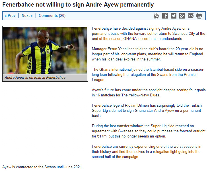 Takviye çalışmalarını sürdüren Fenerbahçe'de sezon başında Swansea'den kiralanan Andre Ayew ile ilgili sıcak gelişmeler yaşanıyor.