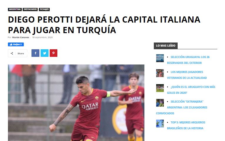 Balon Latino dergisinden Martin Canaves, "Perotti'nin son 4 yılda 24 kez sakatlandığını düşünürsek performansının neden düşük olduğu daha iyi anlaşılabilir. Oyununu bulmak için döndüğünde hep bir başka sakatlık devam etmesini engelledi. Perotti'nin Fenerbahçe'ye gitmesi onun için Anka kuşu gibi yeniden doğma fırsatı olabilir" değerlendirmesini yaptı.