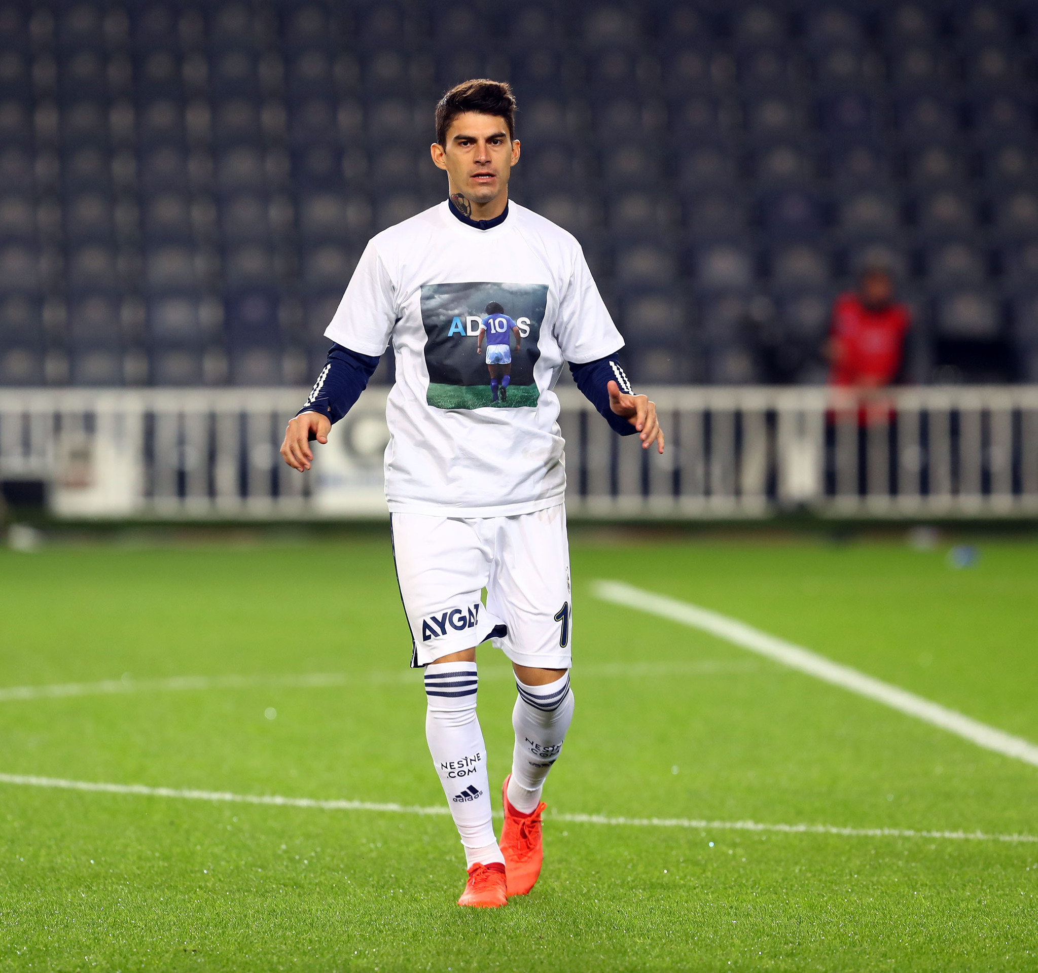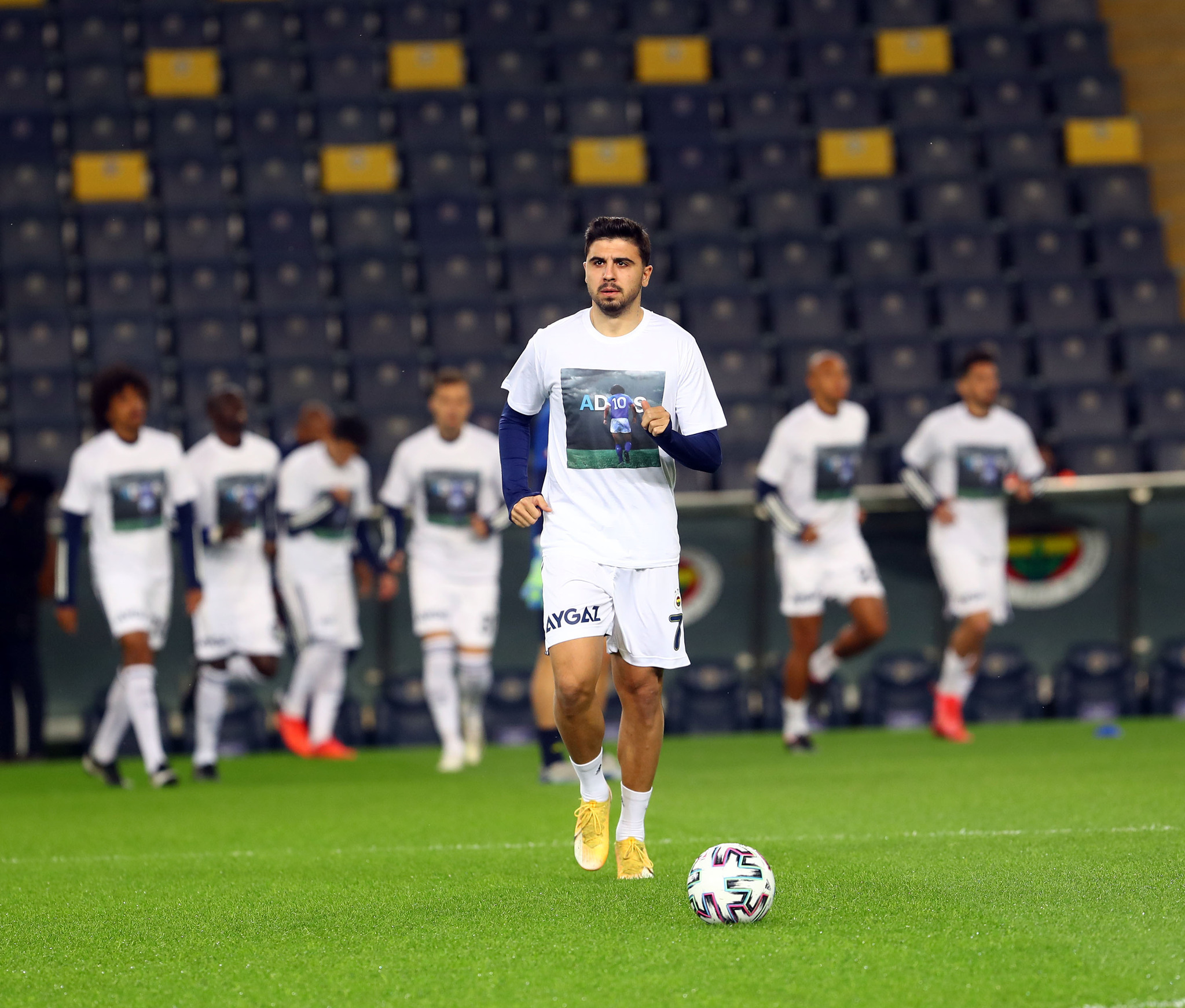 Süper Lig'in 10. haftasında sahasında Beşiktaş'ı ağırlayan Fenerbahçe'de futbolcular, ısınmaya geçtiğimiz günlerde hayatını kaybeden efsane futbolcu Diego Armando Maradona t-shirtleri giyerek çıktı. İşte o kareler...