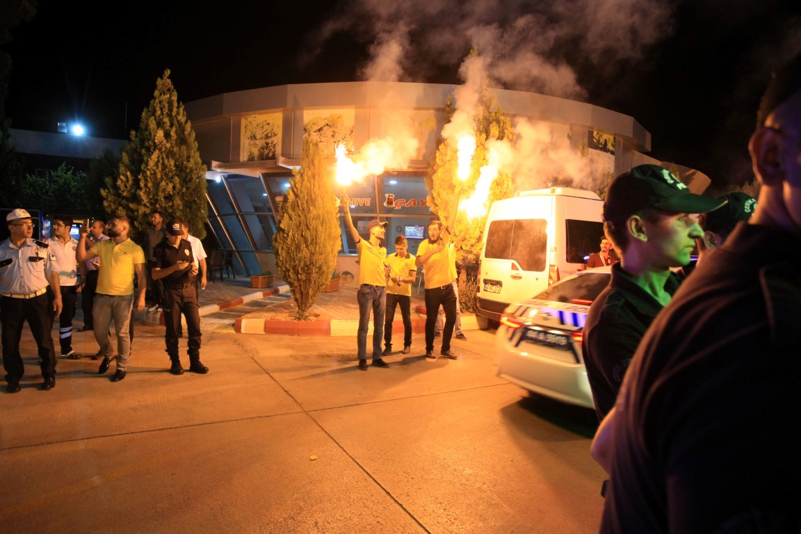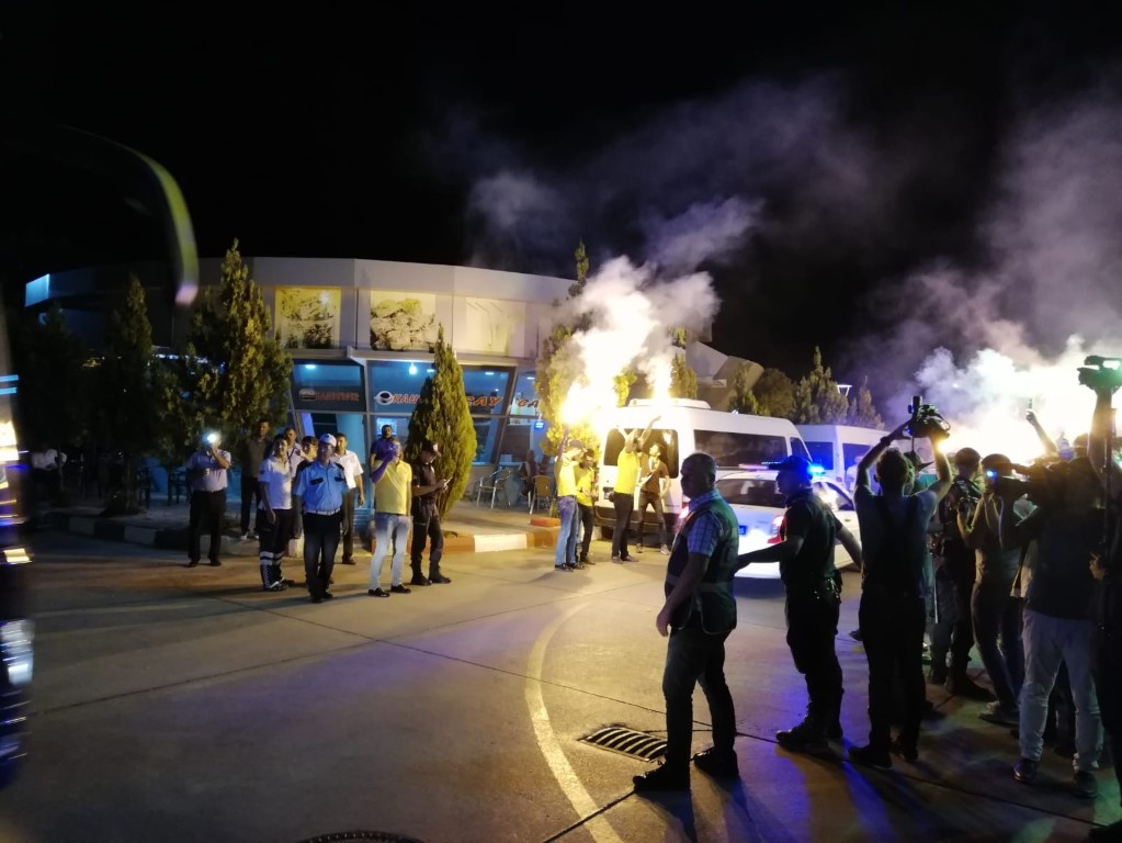 Spor Toto Süper Lig'de yarın Evkur Yeni Malatyaspor ile karşılaşacak Fenerbahçe, Malatya'ya geldi. Malatya Havalimanı'na gelen sarı-lacivertli kafileyi, Fenerbahçeli taraftarlar karşıladı. Teknik direktör Phillip Cocu ve futbolculara sevgi gösterisinde bulunan taraftarlar, tecrübeli teknik adama çiçek verdi. Taraftarlar, meşale yakarak takım otobüsüne bir süre eşlik etti. Fenerbahçe kafilesi, havalimanından konaklayacağı otele geçti. Evkur Yeni Malatyaspor ile Fenerbahçe arasındaki karşılaşma yarın saat 21.45'te Yeni Malatya Stadı'nda oynanacak.