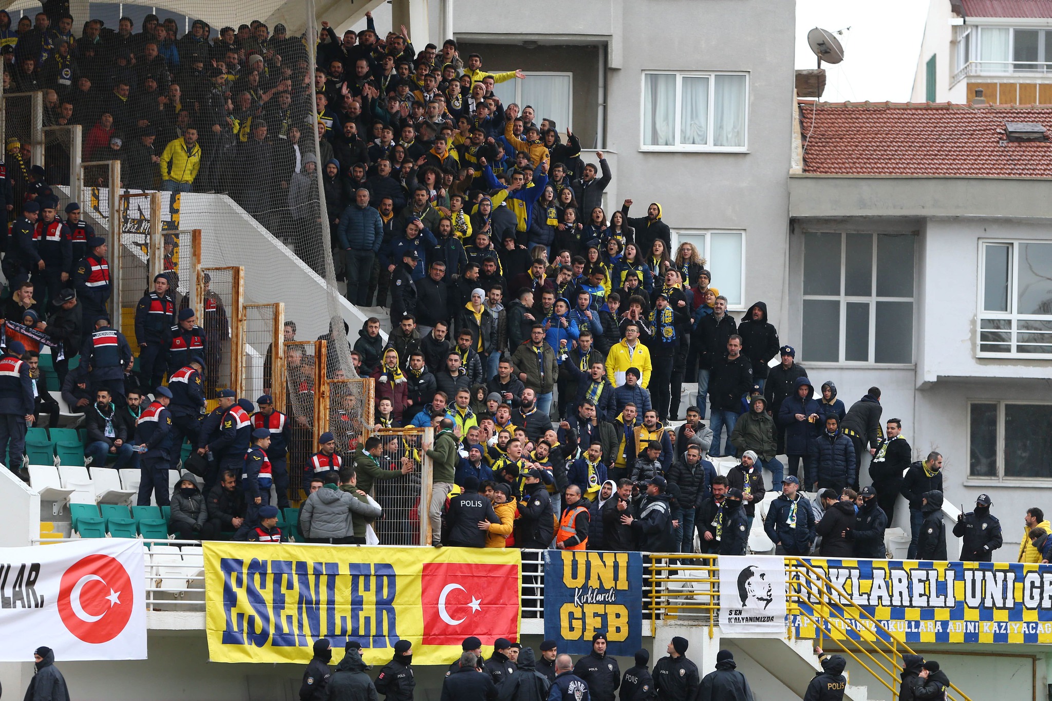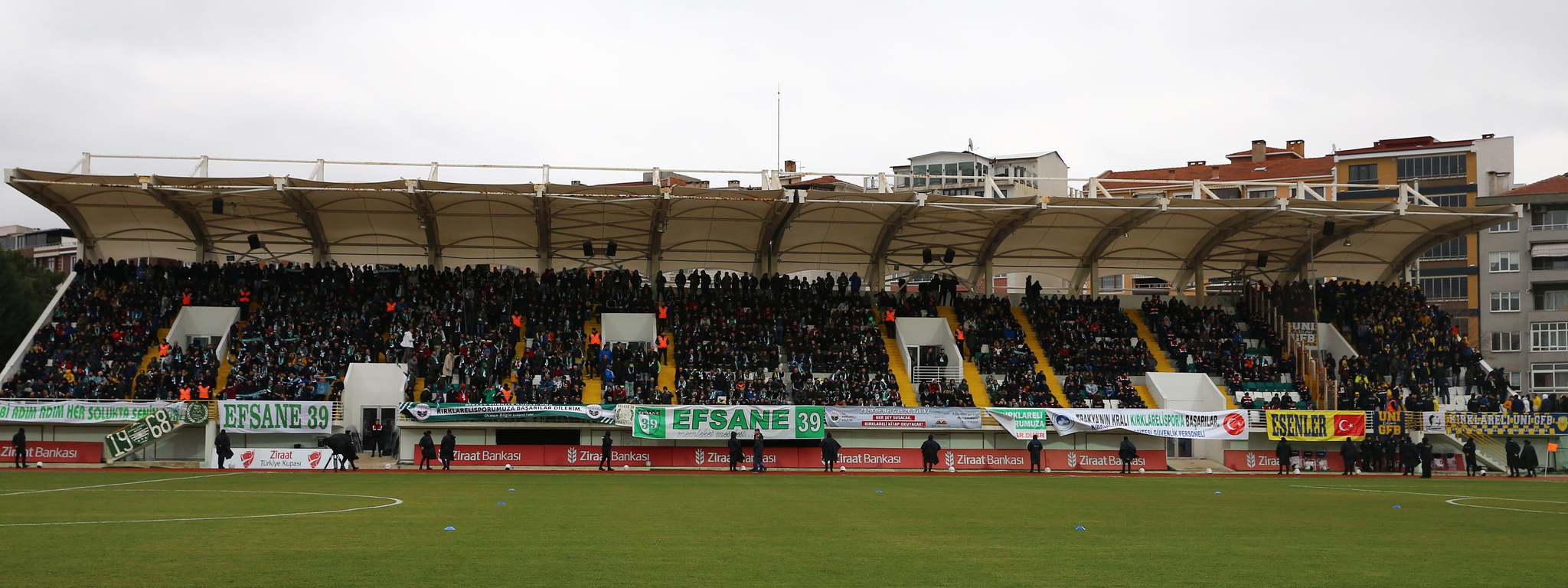 Ziraat Türkiye Kupası'nda heyecan devam ediyor... Çeyrek final aşamasının ilk karşılaşmasında GMG Kırklarelispor sahasında Fenerbahçe'yi ağırladı. Karşılaşmaya Kırklareli halkının büyük bir ilgisi vardı. Stada sığmayan taraftarlar, mücadeleyi çatılardan izledi. İşte görüntüler...
