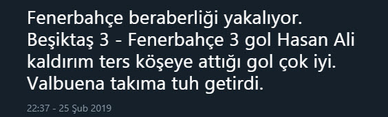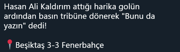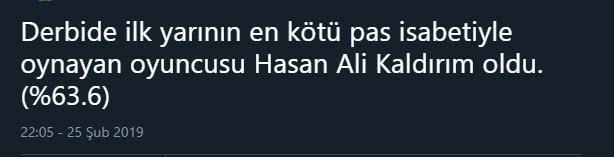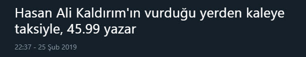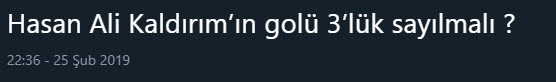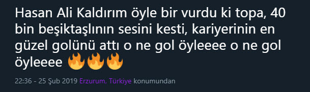 Spor Toto Süper Lig'in 23. haftasında oynanan Beşiktaş - Fenerbahçe derbisinde Hasan Ali Kaldırım'ın uzak mesafeden attığı ve skoru 3-3'e getiren gol sonrası sosyal medyada yorumlar patladı.