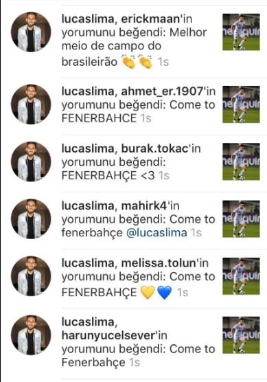Lima, İnstagram'dan kendisine gelen "Come to Fenerbahçe" mesajlarını beğendi.