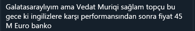 Kosova'nın İngiltere'ye 5-3 yenildiği maçta Fenerbahçeli Vedat Muriç 1 gol ve 2 asistlik performansı ile sosyal medyayı salladı.