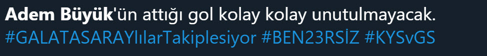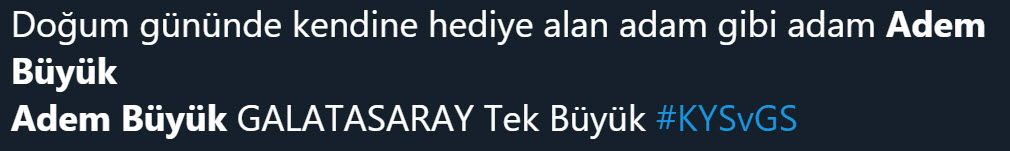 3. Hafta mücadelesinde Kayserispor'a konuk olan Galatasaray karşılaşmayı 3-2 kazanan taraf oldu. Sarı-Kırmızılılar'ın 3. golü 90+9. dakikada Adem Büyük'ün ayağından gelirken Adem'in bu golü sonrası taraftarlar sosyal medyada binlerce yorum yaptı. İşte sosyal medyada Adem Büyük tepkileri...