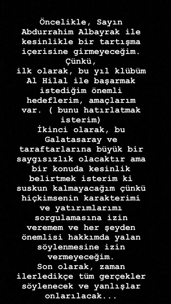 "Bu, Galatasaray ve taraftarlarına büyük bir saygısızlık olacaktır ama suskun kalmayacağım çünkü hiç kimsenin karakterimi ve yatırımlarımı sorgulamasına izin veremem."