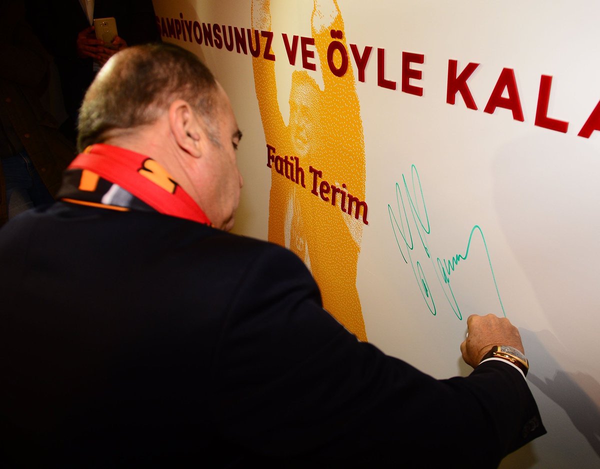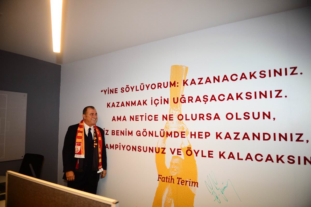 Fatih Terim, kendi adını taşıyan odada "Yine söylüyorum kazanacaksınız. Kazanmak İçin uğraşacaksınız. Ama netice ne olursa olsun, siz benim gönlümde hep kazandınız. Hep şampiyonsunuz ve öyle kalacaksınız" yazılı duvarı imzaladı.