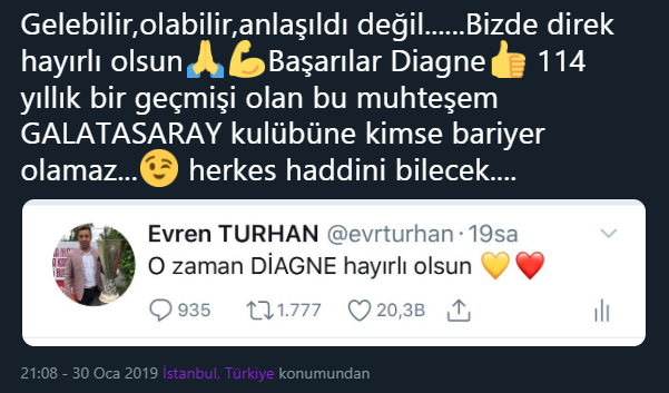 Spor Toto Süper Lig'de 35 puanla 2.sırada olan Galatasaray, Kasımpaşa'dan Mbaye Diagne'yi alarak forvet bölgesine takviyeyi yaptıktan sonra sarı kırmızılı taraftarlar, sosyal medyada adeta sevinçten çılgına döndü. İşte Galatasaray taraftarının forvet transferi için yaptığı capsler...