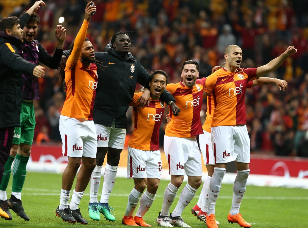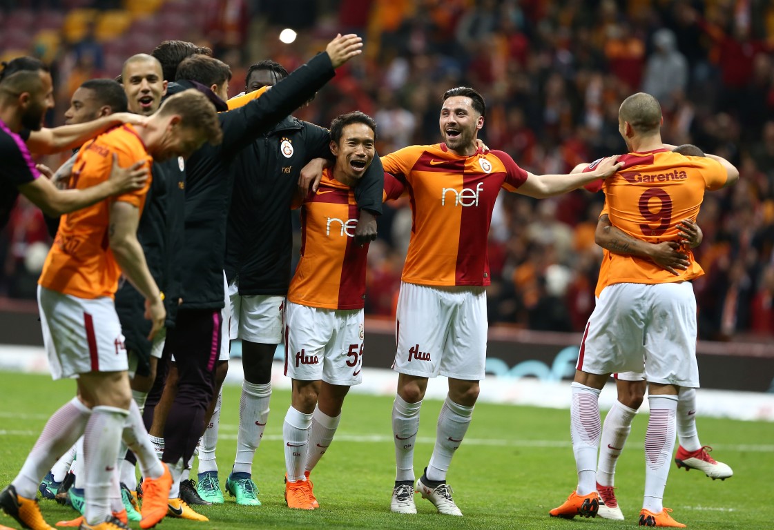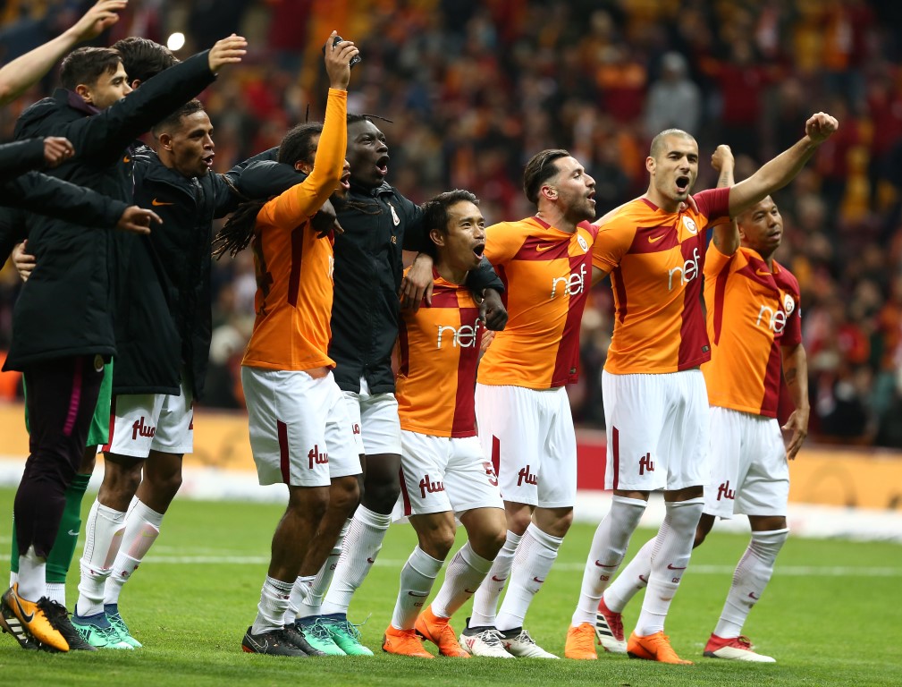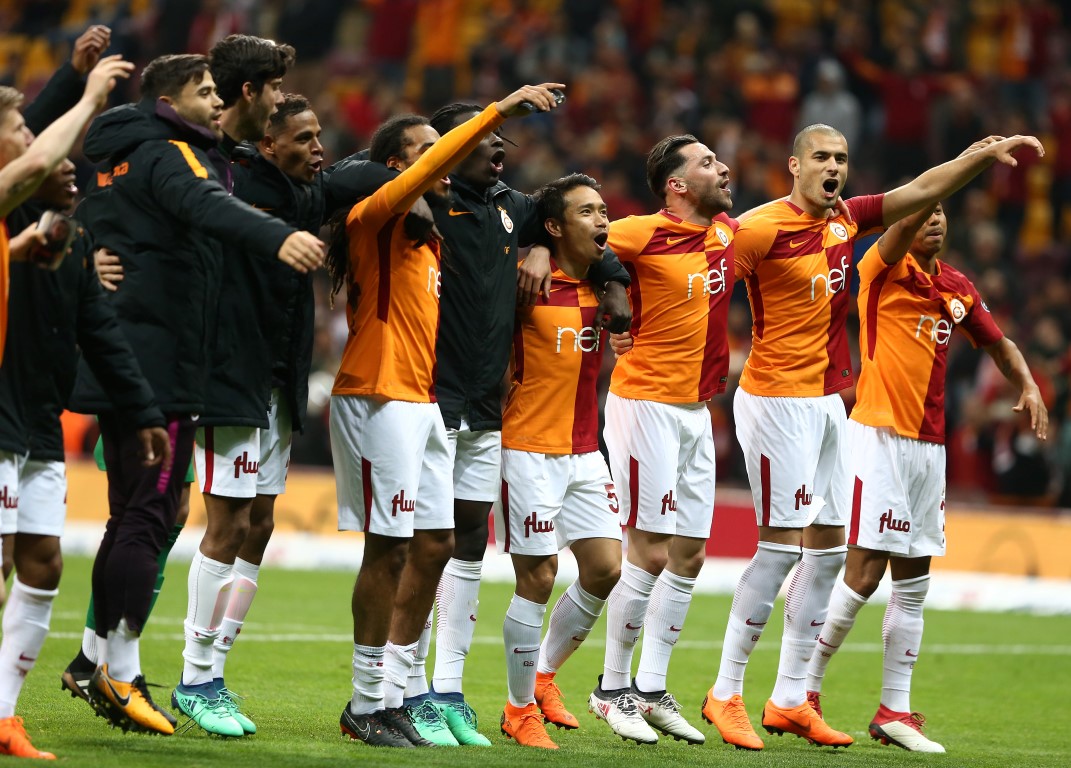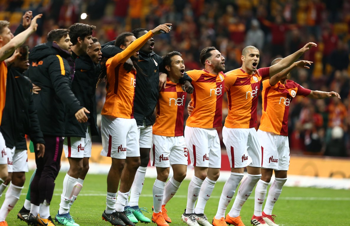 Galatasaray, 2-0'lık Medipol Başakşehir galibiyetini taraftarıyla kutladı. Sarı-kırmızılı futbolcular, taraftarların yanına giderek 3'lü çekti. Galatasaray, Spor Toto Süper Lig'in 29. haftasında Türk Telekom Stadyumu'nda karşılaştığı Medipol Başakşehir'i 2-0 mağlup etti. Sarı-kırmızılılar, bu önemli maçtan galip ayrılarak, Başakşehir'den liderliği geri aldı. Müsabakanın ardından sarı-kırmızılı futbolcular, taraftarların yanına gitti. Futbolcular, taraftarlarla beraber tezahüratlar söylerken aynı zamanda 3'lü de çekti.