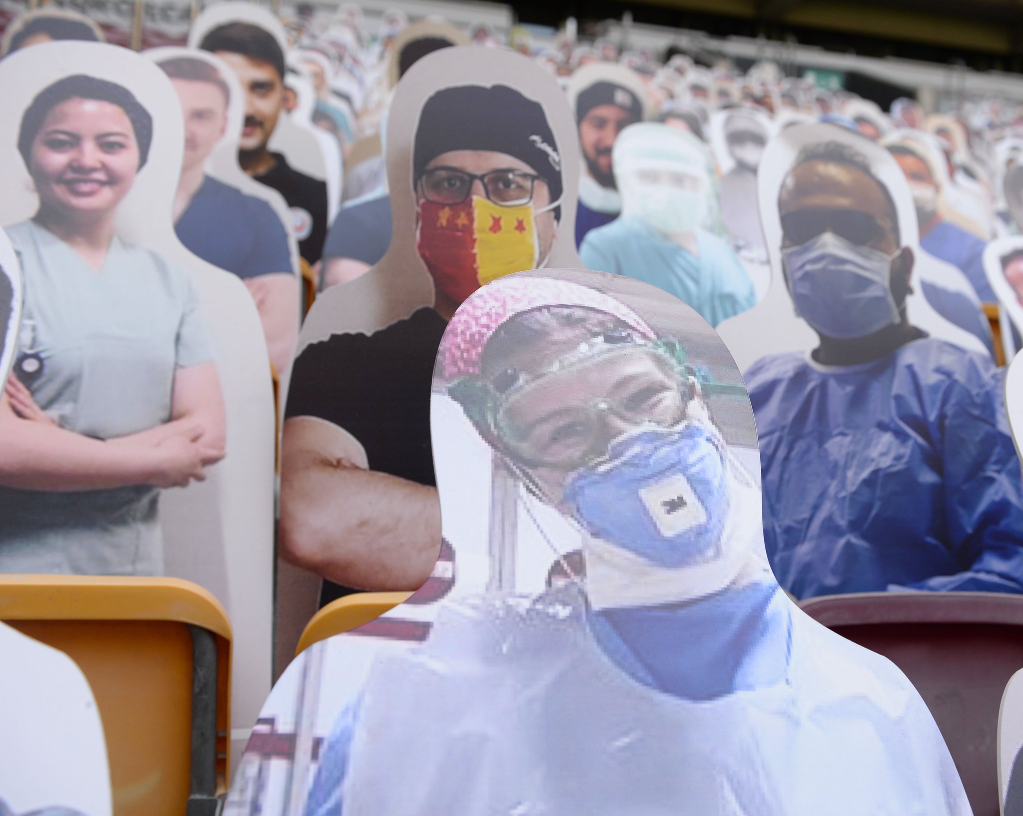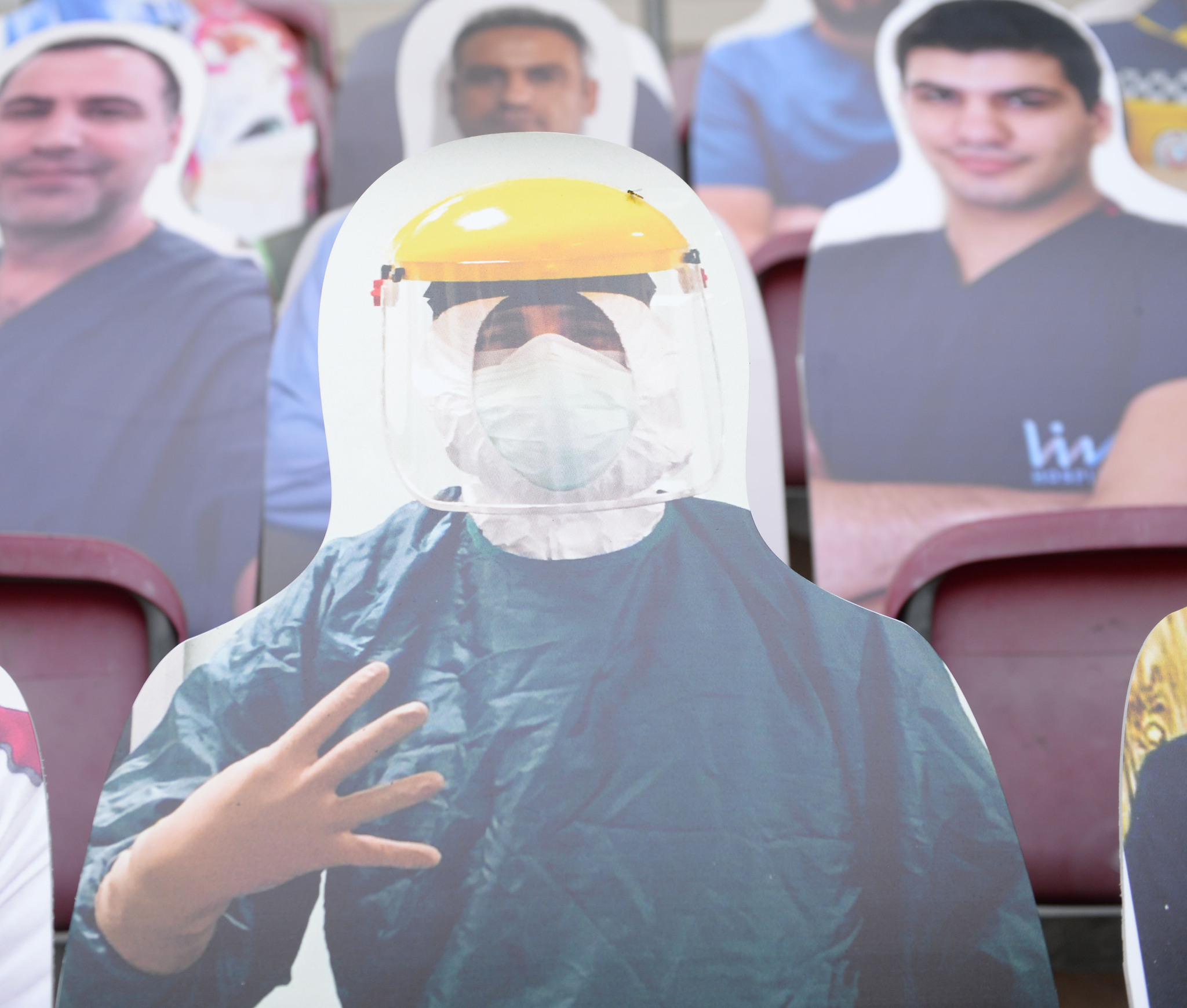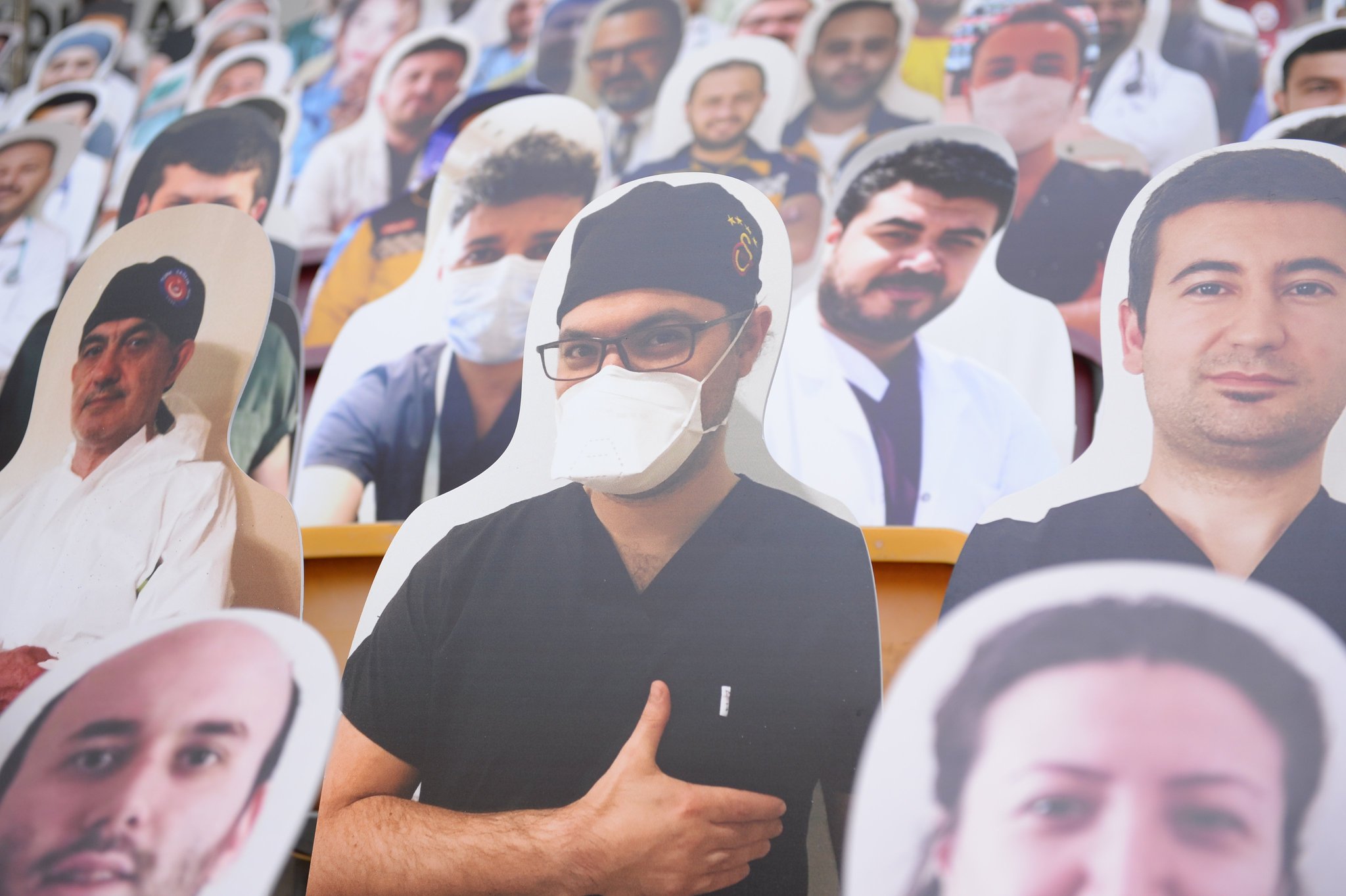 Yeni tip corona virüsü (Covid-19) salgını nedeniyle Süper Lig'in seyircisiz oynanmaya devam edilmesi kararının alınmasından sonra, Galatasaray "Sensiz Olmaz Galatasaray" kampanyası başlatmıştı. Sarı-kırmızılılar, bu kampanyayı düzenlerken sağlık çalışanlarını unutmadı ve 1905 sağlık çalışanının kartonlarını tribünlere yerleştirdi. İşte o fotoğraflar...