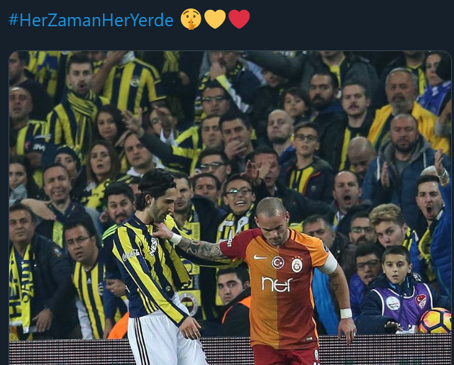 Galatasaray ile Fenerbahçe'nin Süper Lig'in 6. haftasında karşı karşıya geleceği dev derbi öncesi psikolojik savaş da bir taraftan devam ediyor... Taraftarlar iki takımın da son durumunu adım adım takip ederken Fenerbahçe Kulübü sosyal medya hesabından derbi haftasında 'Her zaman her yerde' hashtagi ile bir paylaşım yaptı. Fenerbahçe taraftarı paylaşıma binlerce beğeni ve yorum yaparken sarı-kırmızılı taraftarlar ise tepki gösterdi. İşte Galatasaray taraftarının Fenerbahçe'nin paylaşımına tepkisi...