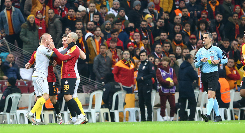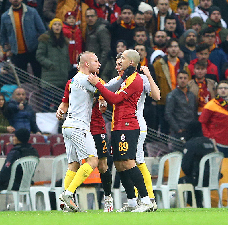 Süper Lig'in 22. haftasında Galatasaray ile BtcTurk Yeni Malatyaspor, Türk Telekom Stadı'nda kozlarını paylaştı. 45. dakikada Adem Büyük'ün penaltıdan attığı golle sahadan 1-0 ayrılan sarı-kırmızılılar, üçüncü sıraya yükselerek zirve yarışına ortak oldu. Öte yandan mücadele esnasında Sofiane Feghouli ile Gökhan Töre arasında gerginlik yaşandı. İşte o anlar...