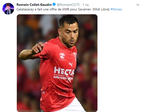 Fransız gazeteci Romain Collet-Gaudin, Galatasaray'ın Nimes'te forma giyen orta saha oyuncusu Teji Savanier için 6 milyon Euro teklif ettiğini açıkladı.