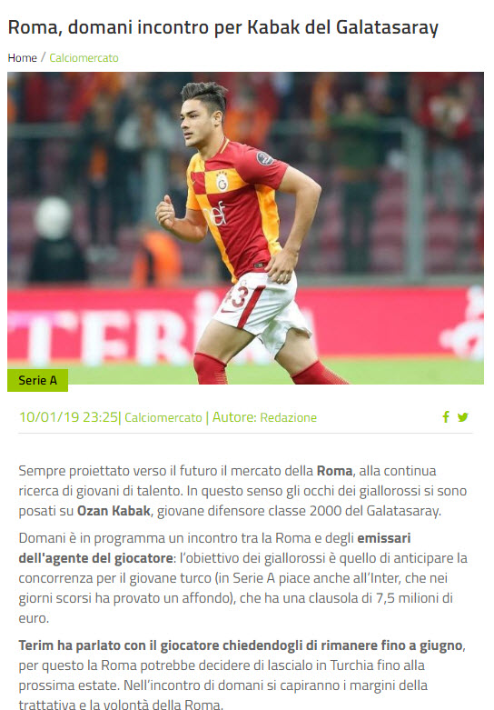 Sky Italia'dan Di Marzio'nun haberine göre, Ozan'ın menajeriyle Roma yetkilileri 12 Ocak Cumartesi günü bir görüşme gerçekleştirecek.
