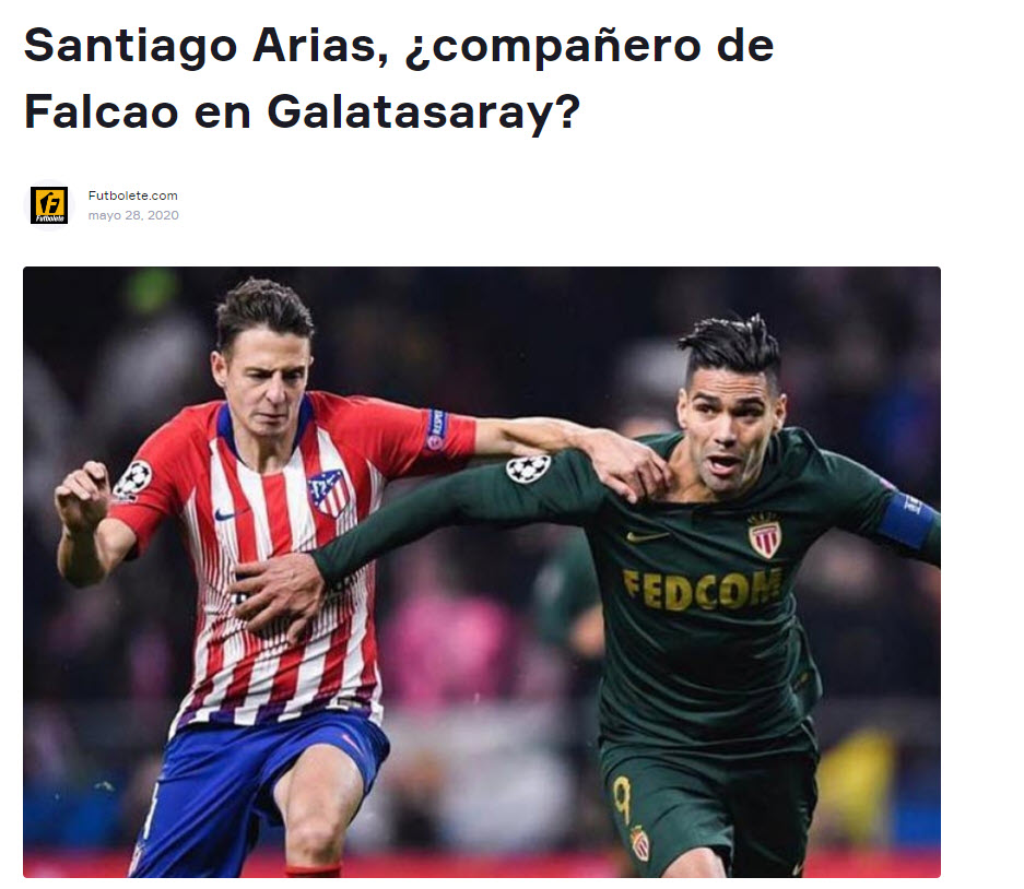 Brezilya basınından "Futbolete.com" sitesi yaptığı haberde, "Falcao, arkadaşı Santiago Arias'ı Galatasaray'a götürmek istiyor. Kolombiya basını Atletico Madrid'de mutsuz olan Arias'ın, Galatasaray'a gideceği iddialarını yineledi.''