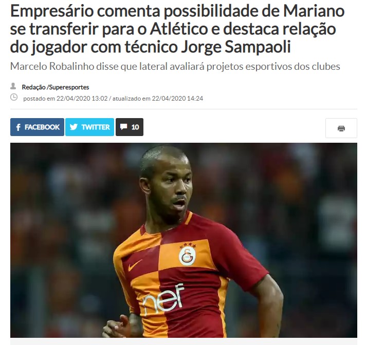 Bu Çarşamba, Radio Itatiaia ile yaptığı röportajda menajer Marcelo Robalinho, Türk kulübünün, Mariano'ya sözleşme yenilemek için bir öneri sunduğunu ancak oyuncunun Brezilya futboluna dönme arzusu olduğu için teklifi reddettiğini açıkladı. Menajere göre corona virüsünün (koronavirüsü) neden olduğu salgın nedeniyle müzakereler durdu. İşte o açıklamalar