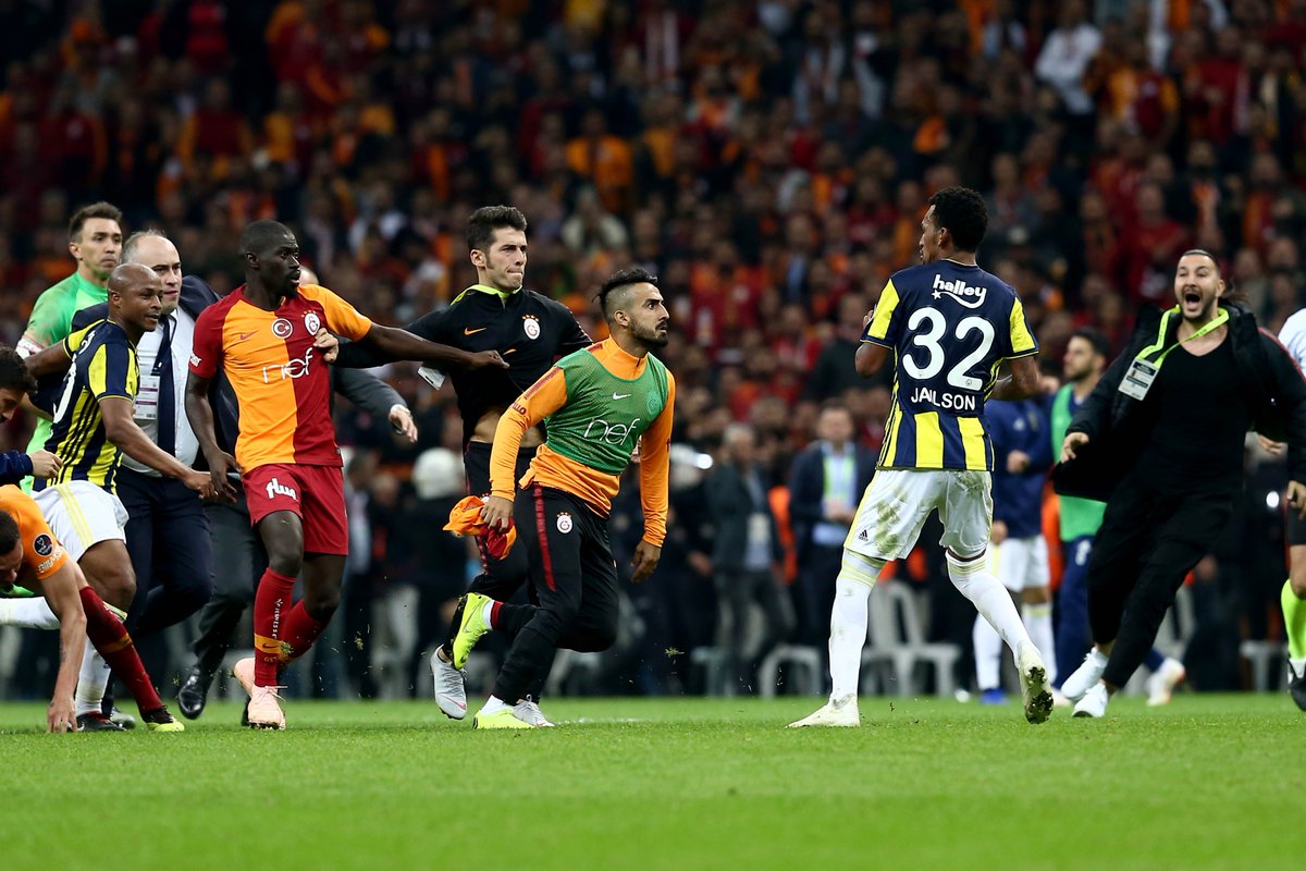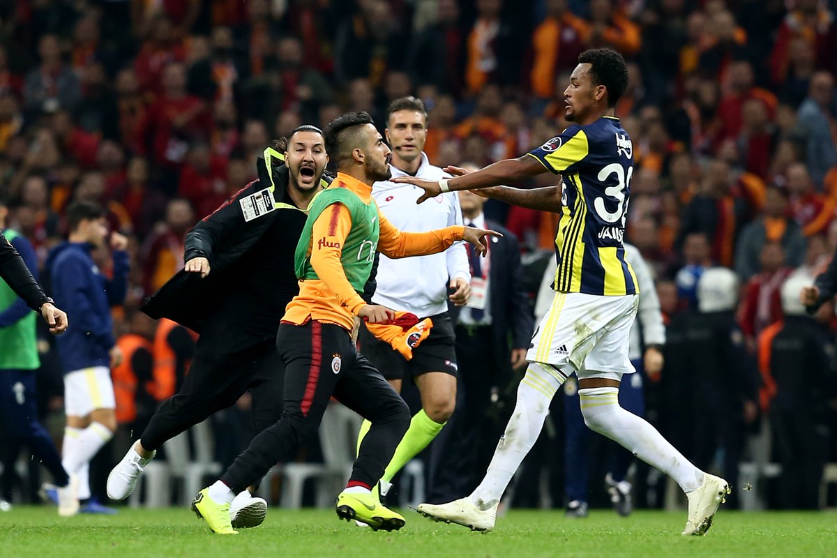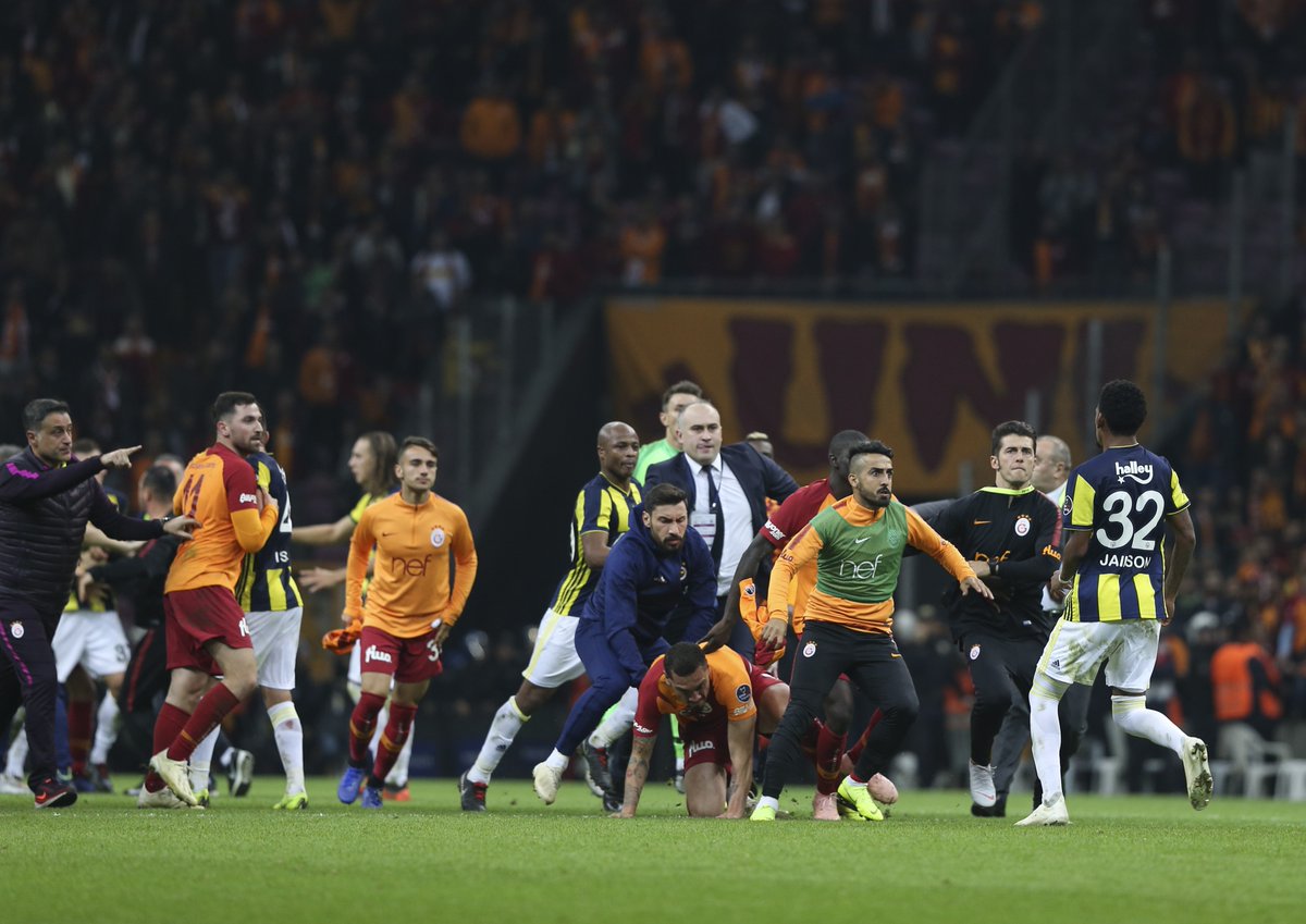 Sahanın ortası adeta ringe dönerken, Türk Telekom Stadı'nda oynanan karşılaşmanın son bölümünde Galatasaraylı Younes Belhanda ve Fenerbahçe Roberto Soldado arasında yaşanan gerginlik, bitiş düdüğünün ardından kavgaya dönüştü.