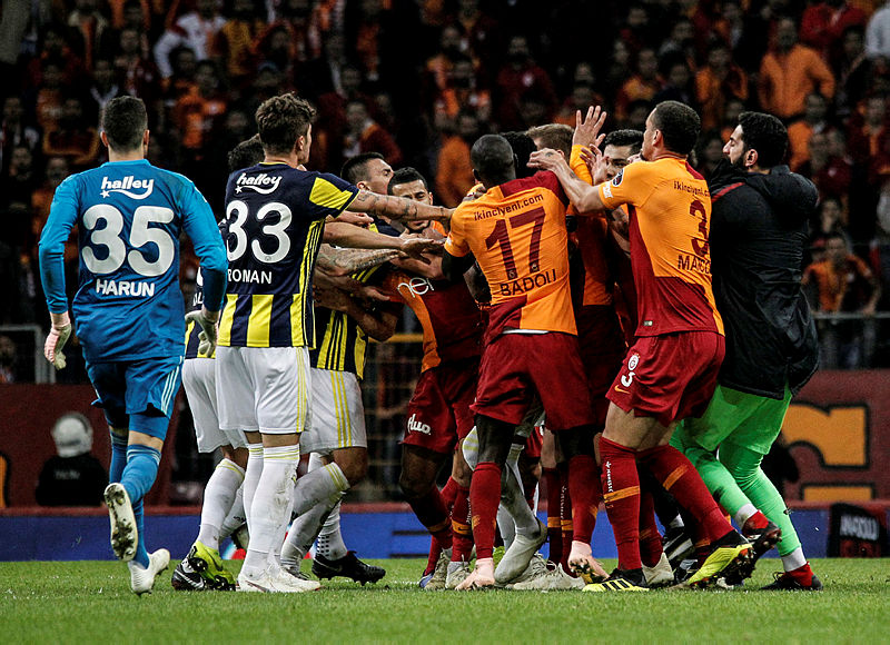 Galatasaray ile Fenerbahçe'nin 2-2 berabere kaldığı derbi maçın ardından iki takım futbolcuları arasında kavga çıktı.