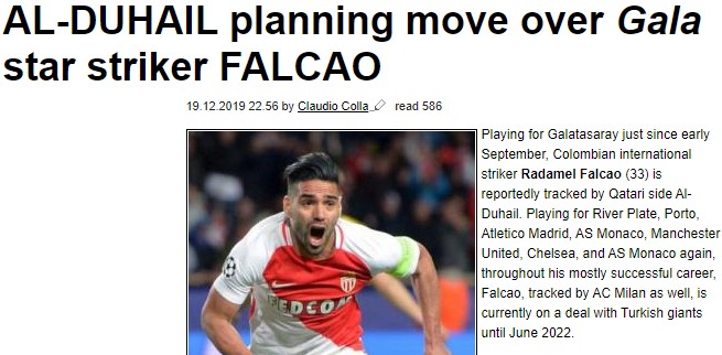Transfermarketweb'de yer alan habere göre, Katar Ligi takımlarından Al-Duhail, Falcao'yu takibe aldı.