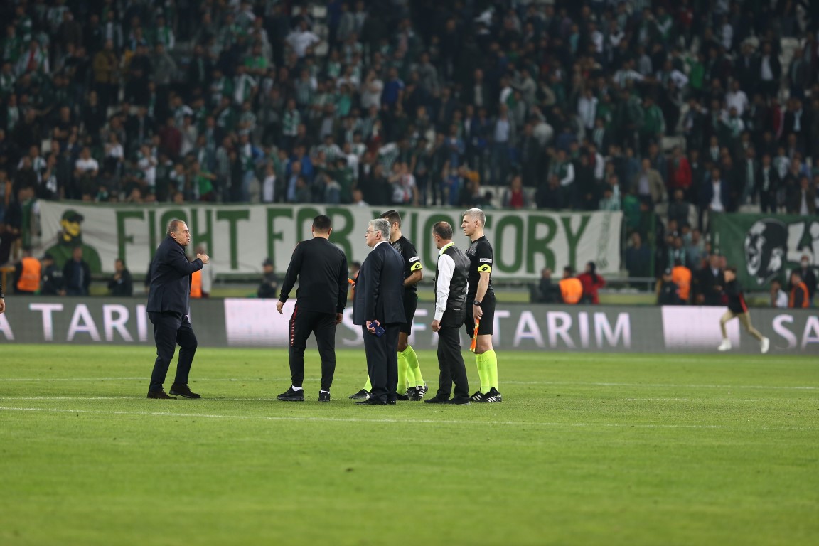 Spor Toto Süper Lig'in 30. haftasında Galatasaray, Atiker Konyaspor deplasmanında kritik iki puan bırakırken, maçın sonunda Fatih Terim'den hakem Mete Kalkavan'a büyük tepki geldi.