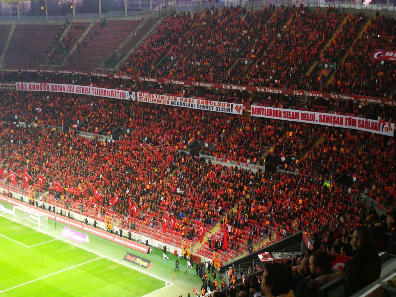 Galatasaray'ın Gençlerbirliği'ni konuk ettiği maçta duygusal görüntüler vardı. Maçın oynandığı Türk Telekom Stadı'nın koltuklarına Türk bayrağı bırakılırken, fotoğrafları spor tabelasından gösterilen şehitlerin isimleri tek tek okundu. Taraftarlar, şehitlerin isimleri okunduğunda "Burada" diye karşılık verdi. Bu sırada bazı taraftarların gözyaşlarına hakim olamadıkları görüldü.