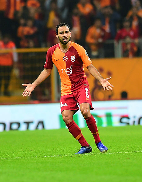 4- Sahadaki dizilişi 4-2-3-1 yapacak. Selçuk İnan'ı, iyileşen Fernando'nun yanına koyacak. Onyekuru'nun arkasında Feghouli, Ömer ve Mariano yapacak. Eren ileride tek forvet olacak.