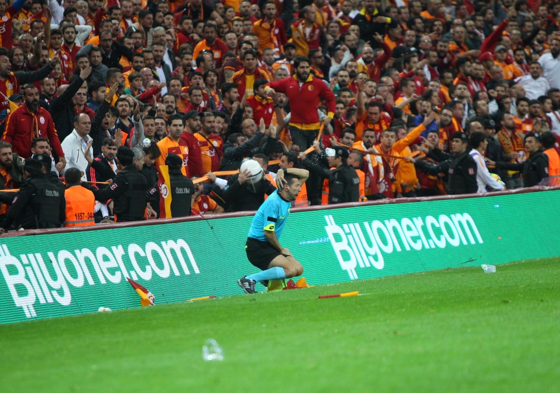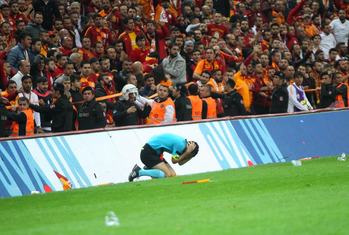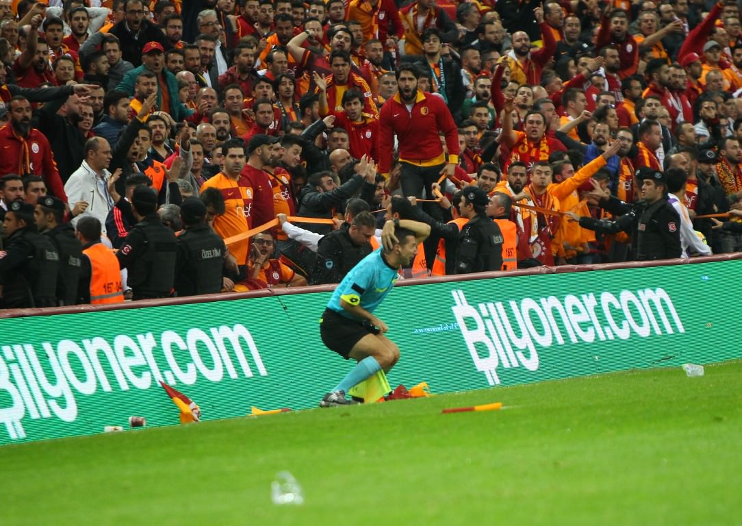 Bu kararın ardından çılgına dönen Galatasaraylı taraftarlar, yardımcı hakem Tarık Ongun'un üzerine yabancı cisimler atmıştı.